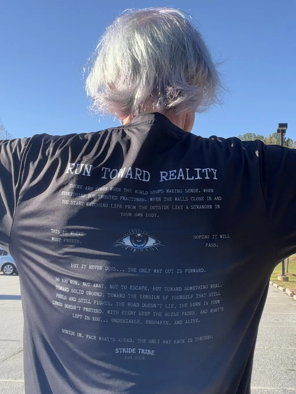 Completed a 50 mile trail run this past weekend and I got so many compliments on my shirt. Proud to sport the Stride Tribe shirts during the run.